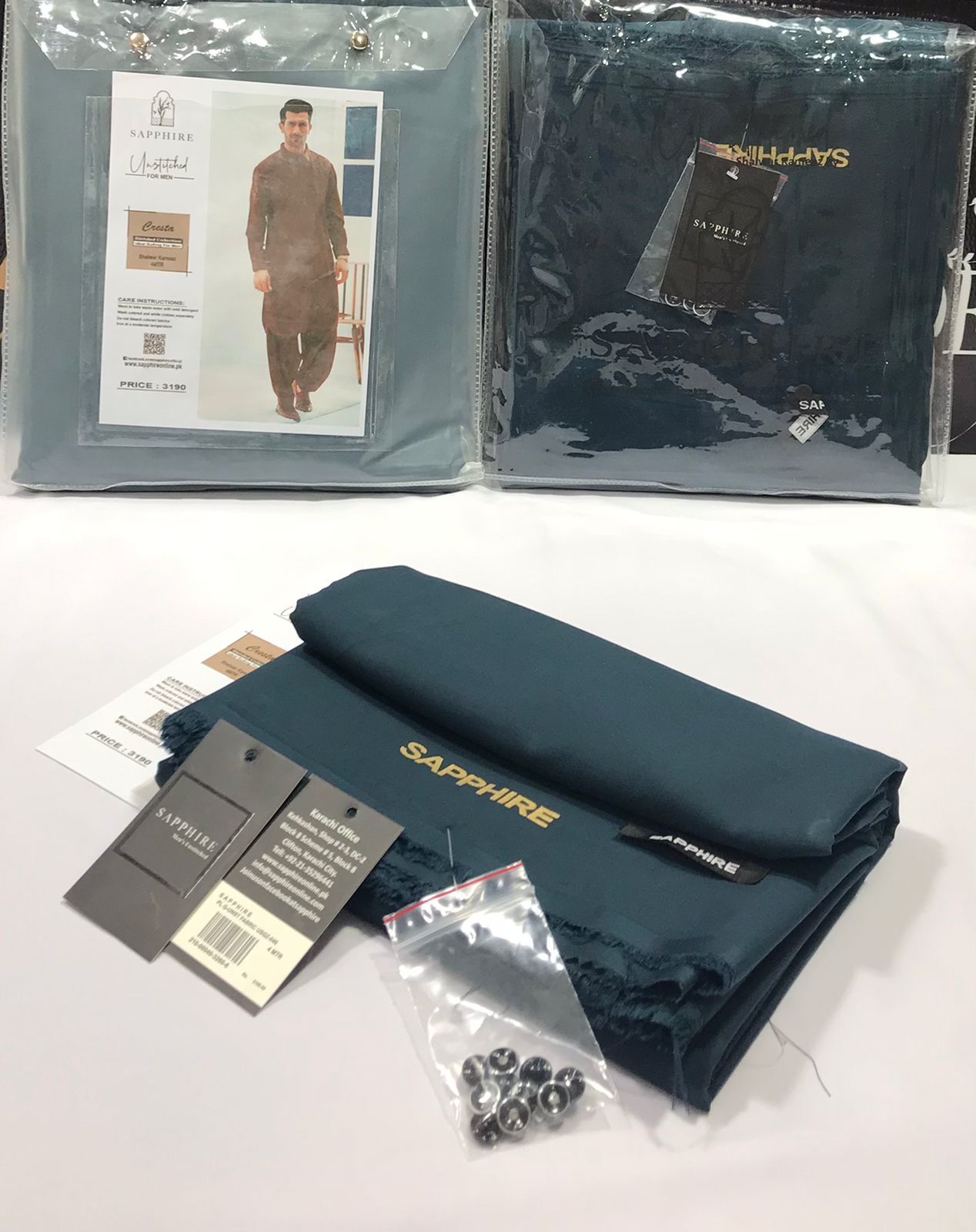 - âIncludes premium buttons, cuff tags, branded bag, and signature brand packing for a complete luxury experience.â